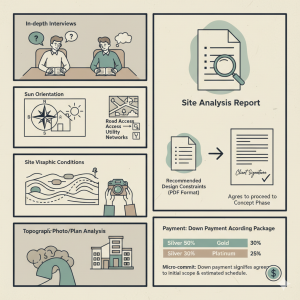 - Analisis lahan sejak awal, agar desain tidak berangkat dari asumsi.